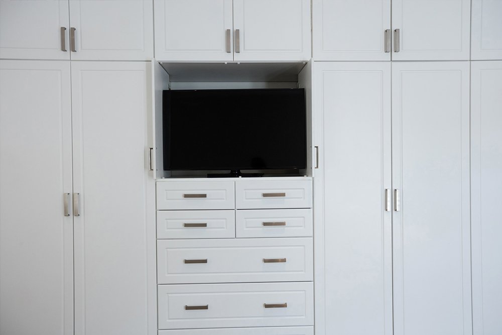 They offer a clean, minimal look and can be customized with mirrors, glass, laminates, or wooden textures.