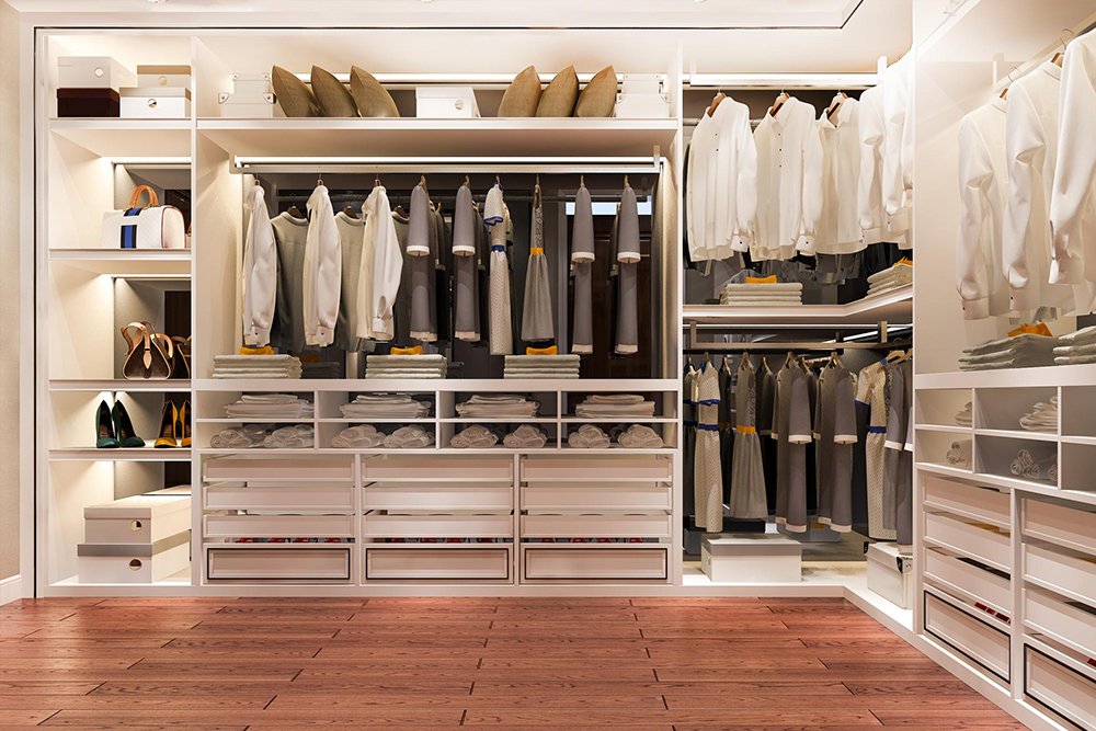 A walk-in wardrobe is the ultimate luxury storage solution. It provides a dedicated dressing area with open shelves, drawers, hanging spaces, and accessory organizers.